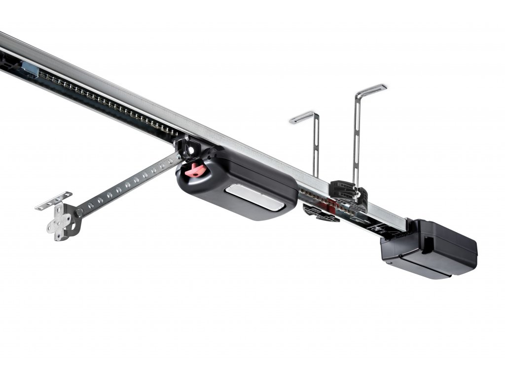 Pohony brán Base+ s trojdielnou koľajnicou, riadiacou jednotkou inštalovanou na konci koľajnice